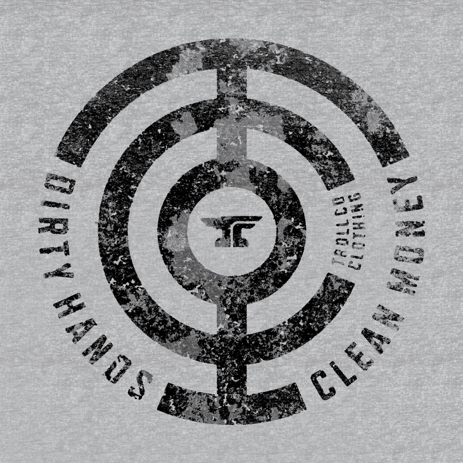 The DHCM TCO Tee features a distressed bullseye design circling the Troll Co. anvil logo, with the Dirty Hands Clean Money message built into the ring. It’s made for those who know what they stand for and don’t need to say much about it.