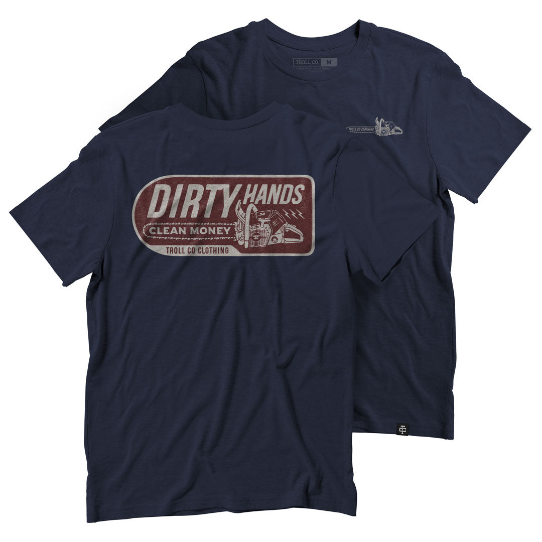 The DHCM Chainsaw Tee – This tee is a nod to those who clear the way, grind through the mess, and carve their path with grit and steel. Featuring the bold “Dirty Hands Clean Money” motto, it’s a tribute to hard labor, no shortcuts, and pride in every cut.