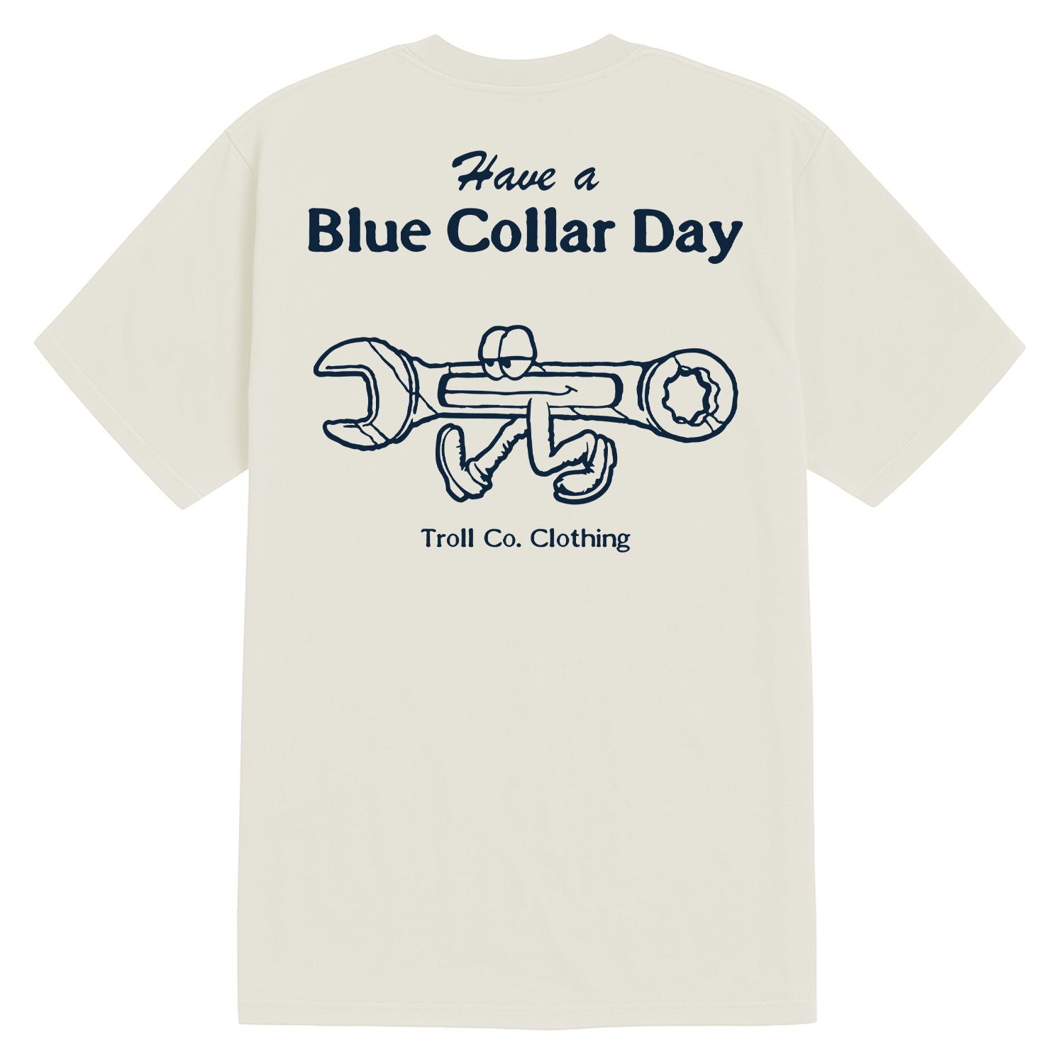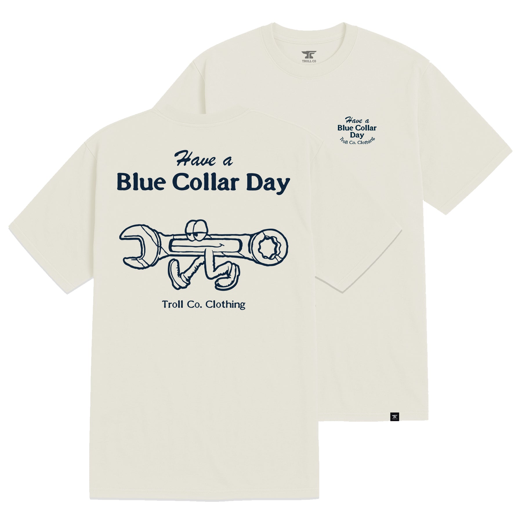 The HBCD Wrenchy Tee keeps things light without losing the message. “Have a Blue Collar Day” lands above a cartoon-style wrench figure on the back. It’s a nod to the trades and the attitude that comes with showing up, doing the work, and having a little fun with it.